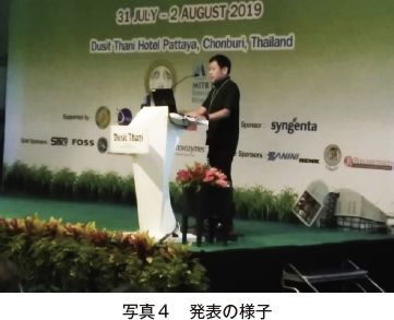 発表の内訳は、TSSCTから招待を受けた海外研究者の発表を含む19課題の基調講演、それ以外の一般口頭発表20課題、ポスター発表7課題となった。タイ、日本のほか、米国、インド、スリランカ、中国、ベトナム、フィリピン、インドネシア、シンガポールなど多くのサトウキビ生産国から参加者が集った。以下に筆者らを含む数題の発表内容について紹介する。