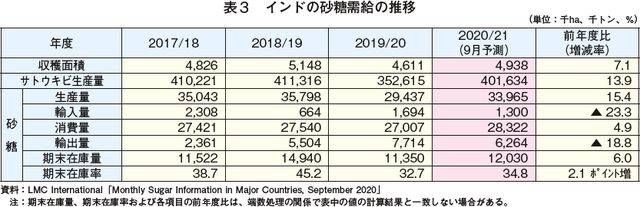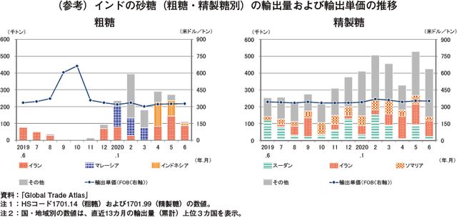 (注)インド政府の2020/21年度における砂糖の輸出政策の経緯については、『砂糖類・でん粉情報』2020年11月号のインドの項「ISMA、2020/21年度における砂糖の輸出政策の早期発表を首相官邸に要請」(https://www.alic.go.jp/joho-s/joho07_002327.html)も参照されたい。
