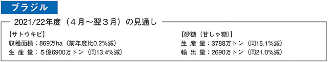 2021/22年度の砂糖生産量はやや減少し、輸入量は大幅に減少する見込み