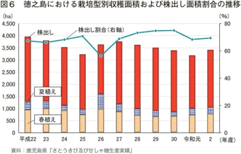 その他、収穫後にはスクープを利用して、ハカマなどのすき込みを行っており、土壌の踏圧改善と排水改善、地力低下防止を図っている。加えて、スクープは中耕ロータリーを使用するよりも作業時間が抑えられ、また、降雨後のロータリーが稼働できない土壌でも作業可能であることから、早期に株出し管理を行うことができるという利点がある。