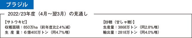 (注)『砂糖類・でん粉情報』2022年9月号「世界の砂糖需給に影響を与える諸国の動向(2022年8月時点予測)」https://www.alic.go.jp/joho-s/joho07_002771.htmlを参照されたい。