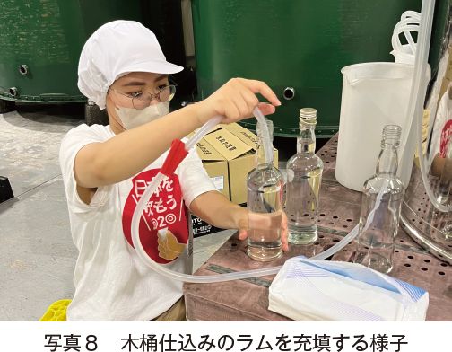 そこから2020年には、クラウドファンディングを活用しホワイトラムを熟成させる樽を購入、また翌21年には、かつて日本酒の仕込みに使われていた木桶を改修し、木桶で糖蜜を発酵させるラムづくりにチャレンジするなど製造面ではさまざまな条件の下で、発酵や蒸溜を試行し、販売面ではコロナ禍という思うような販売活動ができない逆境のなか、クラウドファンディングなども活用しながら少しずつ販路を広げてまいりました(写真7、8)。