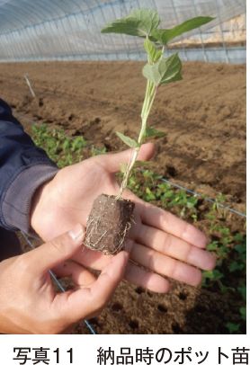 ポット苗の価格は、通常の苗の販売価格とそれほど変わらないが、三和ベルディでは、バイオ苗の導入は基腐病の侵入リスクを低く抑えられ、かつ、収量の増加や形も良いことから、生産者には十分な収益性があると見込んでいるとのことであった。