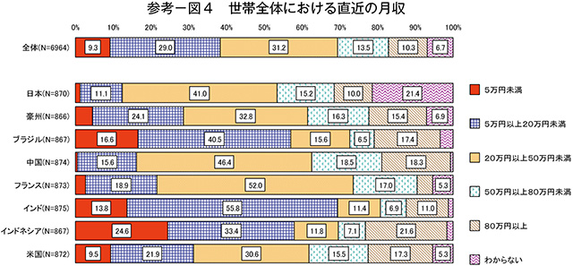 国別では、8カ国全体で最も多かった「収入が増えたから」が、日本を除く7カ国で3位以内の増加理由に入ったものの、各国で状況は異なった。生活習慣の変化や健康への配慮についての回答が多かったほか、在宅時間の増加による変化も上位になった。日本は、自宅で過ごす時間の増加、生活習慣の変化、収入の減少が上位に挙げられた。