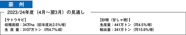 2023/24年度の砂糖生産量と輸出量は大幅に減少する見込み