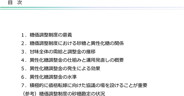 > 異性化糖に係る糖価調整制度の運用の見直しを行いましたのでご紹介します