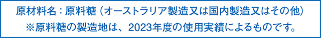 (3)製造地の異なる原料糖の年間の使用重量順位は「オーストラリア製造>国内製造>その他」となることが見込まれます。また、「原料糖の製造地は、2023年度の使用実績順によるものです。」などの注意書きは、原料原産地表示の根拠が2023年度の実績に基づくものであることを示しており、食品表示の欄外に記載します。