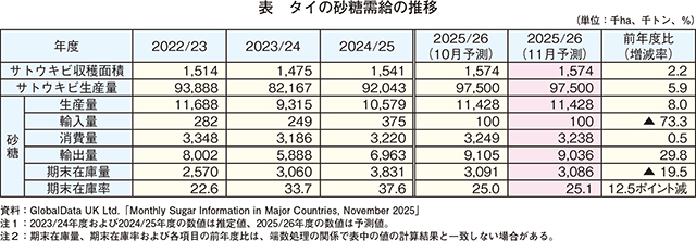 2025/26年度の砂糖生産量はかなりの程度、輸出量は大幅な増加見込み