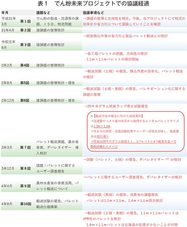 平成31年より「でん粉未来プロジェクト」にて協議、輸送試験などを行ってきました。振り返ると協議において、以下の大きな節目が4回ほどありました。