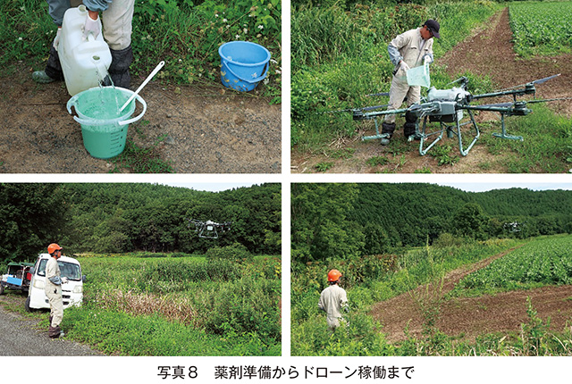 なお、うち1戸はドローンによる散布を5回、もう1戸では4回の散布を実施し、延べ面積で45ヘクタールの防除を行った。