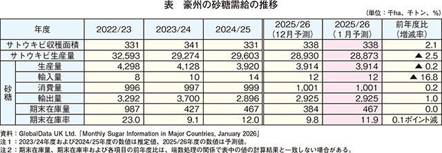 ホーム > 砂糖 > 砂糖の国際需給・需給レポート > 4 日本の主要輸入先の動向(2026年1月時点予測)