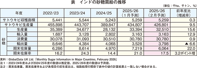 ホーム > 砂糖 > 砂糖の国際需給・需給レポート > 3 世界の砂糖需給に影響する各国の動向(2026年2月時点予測)