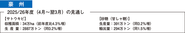 2025/26年度の砂糖輸出量は大幅な増加見込み