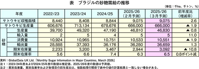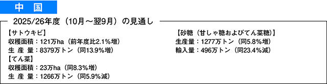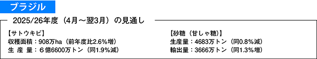 2025/26年度の砂糖生産量はかなりの程度増加見込み