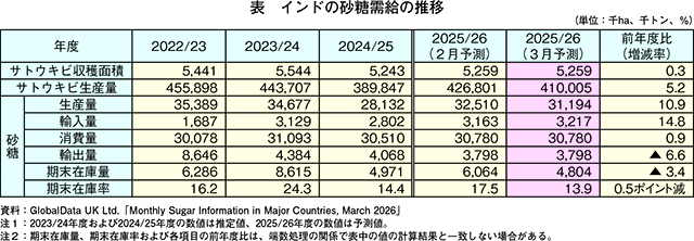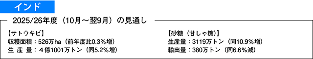 ホーム > 砂糖 > 砂糖の国際需給・需給レポート > 4 世界の砂糖需給に影響する各国の動向(2026年3月時点予測)