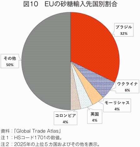 EUの砂糖消費は、砂糖と健康に関する議論の高まりにより、消費者が批判的な意見や印象を抱きやすい状況にあることなどから、特に食用を中心に減少傾向にある(図8)。一方、アフリカや東南アジアなど一部地域では、今後も砂糖の消費拡大が続くと見込んでいる。