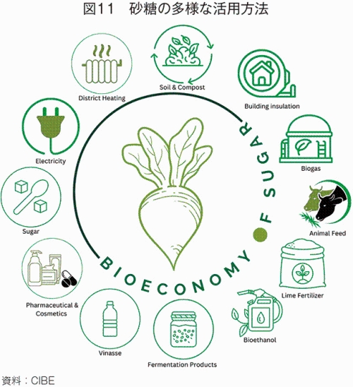 CEFSの会員企業は、ISOセミナーで紹介されたマイコプロテインなど、砂糖の新規用途開発に取り組んでいる。しかし、てん菜をバイオエタノールの原料とする場合には、食料・飼料との競合作物であるとの理由で、エネルギー利用には制限があることから(注10)、欧州における拡大余地は小さいとされる。てん菜は、生産コストの高さなどからトウモロコシなどの他原料と比較して「高価な作物」と位置づけられており、てん菜の非食用用途の拡大には十分な支援が必要である。