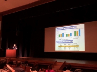 生産振興大会の前後では、でん粉の価格調整制度の周知・浸透およびかんしょでん粉の様々な用途を紹介し、生産者の生産意欲向上に資することを目的として、当機構鹿児島事務所では、パネルの展示、パンフレットの配布等を行った(写真5)。立ち寄った生産者の多くがかんしょでん粉を使った加工食品になじみのない様子で、展示された菓子、麺、春雨等を手に取り、裏面の食品表示を確かめていた。また、かんしょでん粉が使われた市販のスナック菓子や「こなみずき」というかんしょでん粉で固めた手作りゼリーの試食を行い、特徴的な食感が好評を博していた。