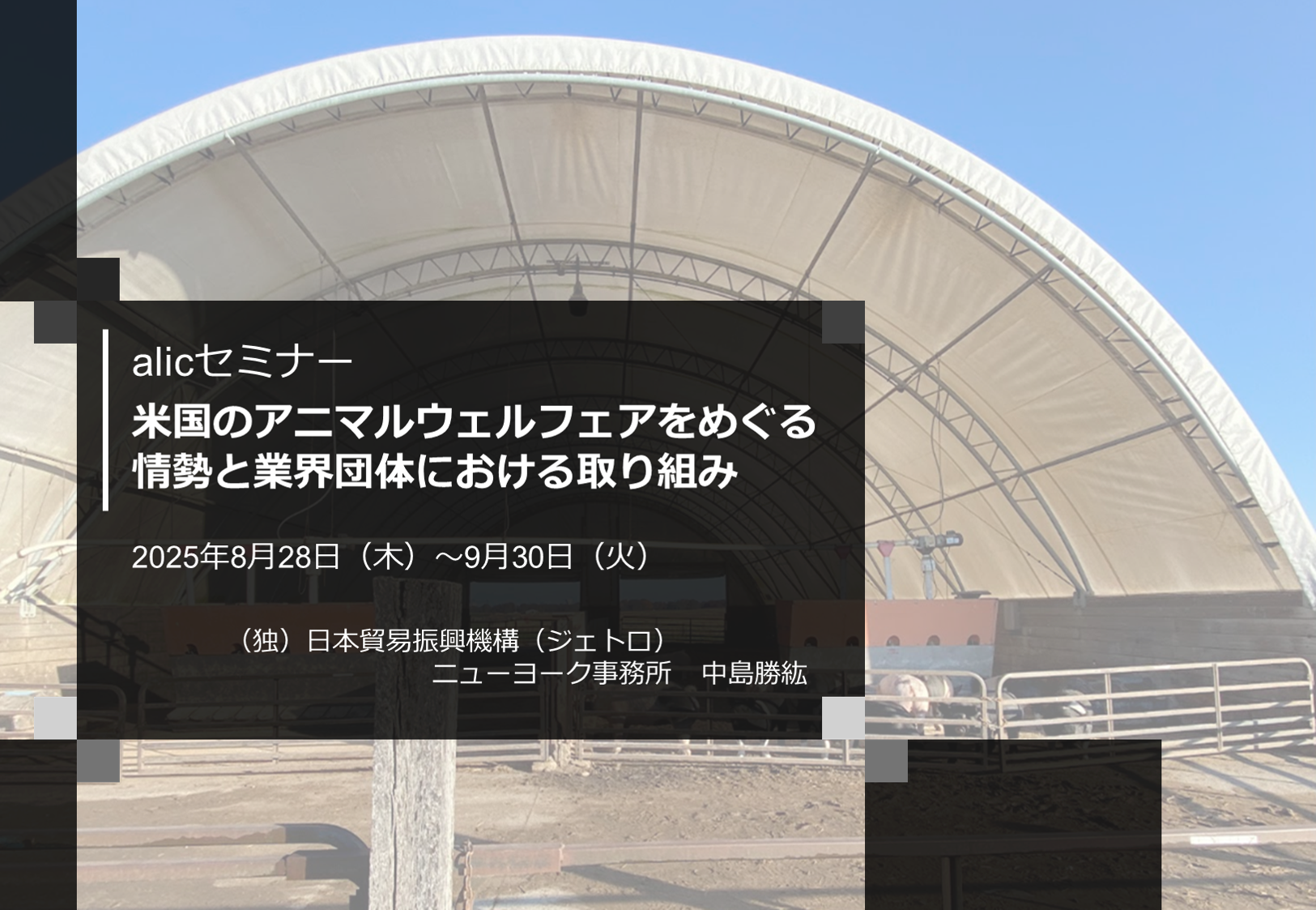 alicセミナー:米国のアニマルウェルフェアをめぐる情勢と業界団体における取り組み