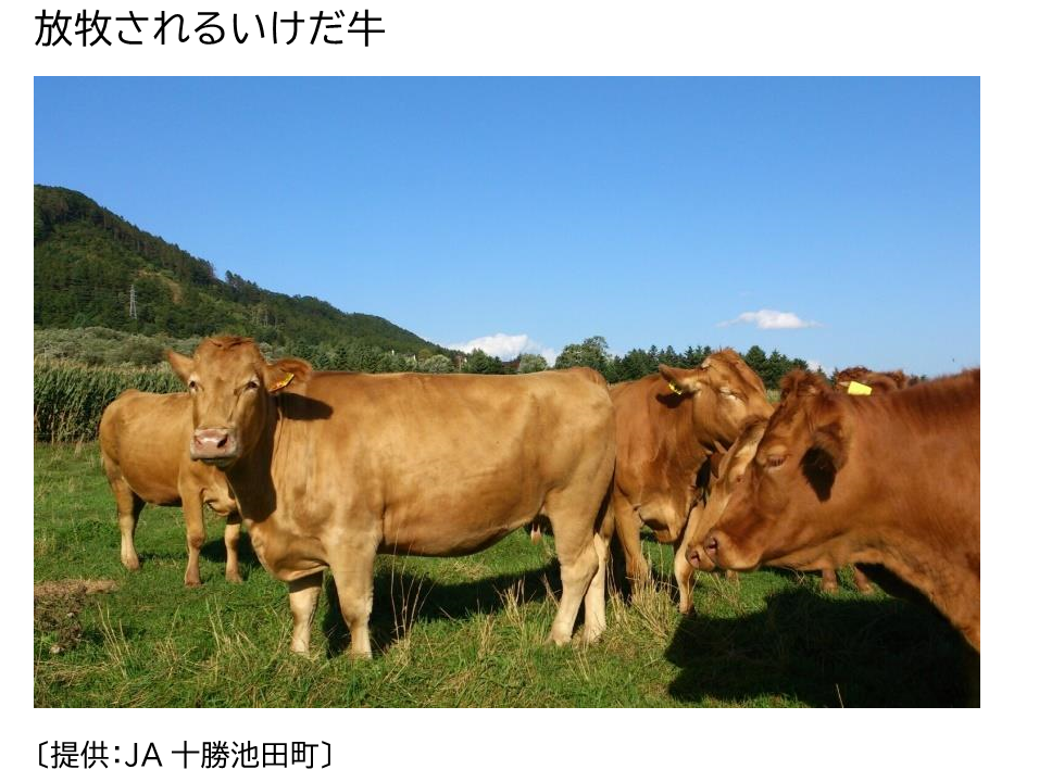 1970年代に熊本県より池田町にあか牛が導入されて以来、生産者の皆さんは牛肉の輸入自由化等いくつもの転換期を乗り越えてこられました。この間、多くの生産者が繁殖経営から、繁殖・肥育を行う一貫経営へと経営形態を移行されたそうです。それに伴い、優良な繁殖雌牛の導入等による資質向上、肥育技術の向上と平準化のための研修による技術の研鑽などにより、高品質なあか牛の安定供給が可能となったとのことです。また、地域特産の赤ワインの副産物を有効活用した循環型農業の取り組みと併せたブランドイメージ向上など、現在のいけだ牛の評価を確立するまで様々な取組が行われてきたとのお話がありました。