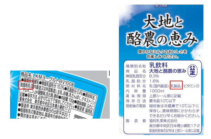 <原材料表示の「脱脂粉乳」や「乳製品」の文字をぜひ探してみてください> ※写真は協同乳業提供