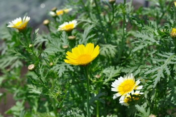 花は観賞用の菊に似ていますが、秋に咲く菊と異なり春に咲くので春菊と呼ばれ、江戸時代の事典「