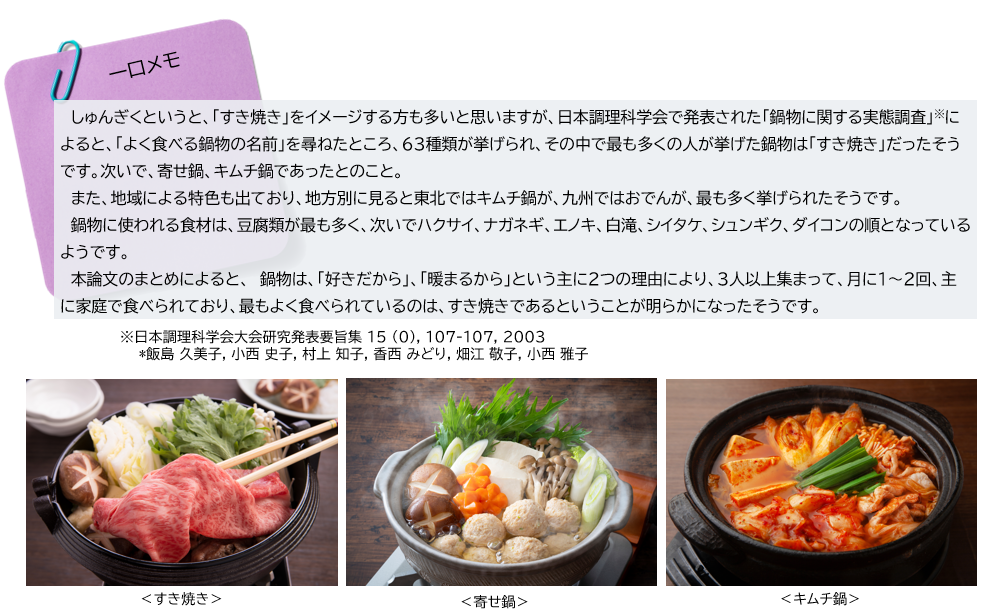 しゅんぎくは、食欲をそそるさわやかで独特な香りとシャキシャキとした食感、食卓を彩る鮮やかな緑が好まれ、鍋料理の定番野菜として広く浸透しています。栄養価の高い緑黄色野菜の一つで、体内でビタミンA に変換されるβ- カロテンが、ほうれんそうやこまつなよりも多く含まれています。β-カロテンは、皮膚や粘膜、夜間の視力の維持を助け、風邪の予防にも効果が期待されます。