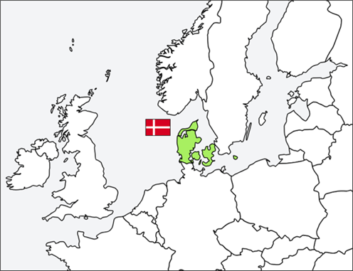 <ヨーロッパ北部にあるデンマーク。面積は約4.3万平方キロメートルで、日本の九州とほぼ同じ大きさです。>