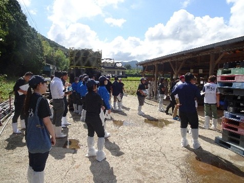 今回の研修会の事務局である(公社)大分県畜産協会の担当者によると、「学生には技術的な勉強の機会としてほしいが、それ以外にも農家や畜産関連会社と顔見知りになっておくという、地域内の『つながり』をつくることを重視している。」とのことでした。