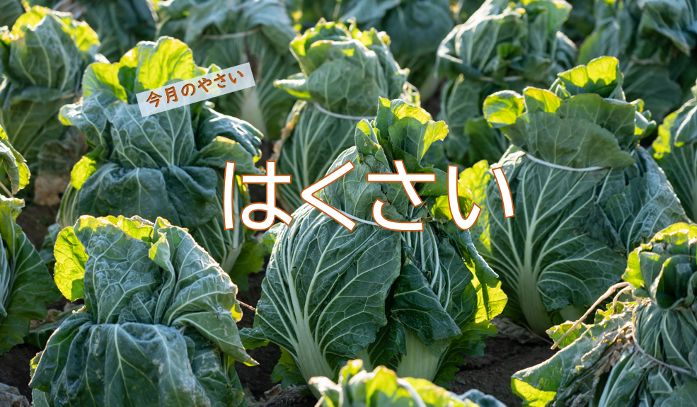 | はくさいの旬は、冬。寒さに当たって、甘みがグッと増したはくさいは、冬の定番の野菜の一つです。和食によく合い、鍋にも漬物にも使われているはくさい、実は日本で栽培されるようになったのは明治以降と、ブロッコリーやカリフラワーといった欧米から導入された野菜と同時期です。それまでは、葉物野菜といえばツケナ類でしたが、栽培方法が確立されると、一気に全国に広まり、食卓には欠かすことのできない野菜の一つになりました。 |