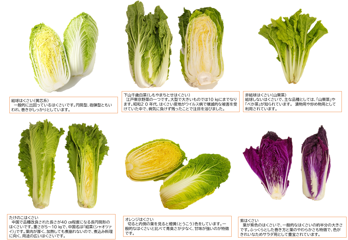 はくさいは、大きく分けて結球タイプ、半結球タイプ、非結球タイプがありますが、現在日本で流通しているのは、ほとんどが結球タイプです。また、この結球タイプで、現在主流となっているのは、