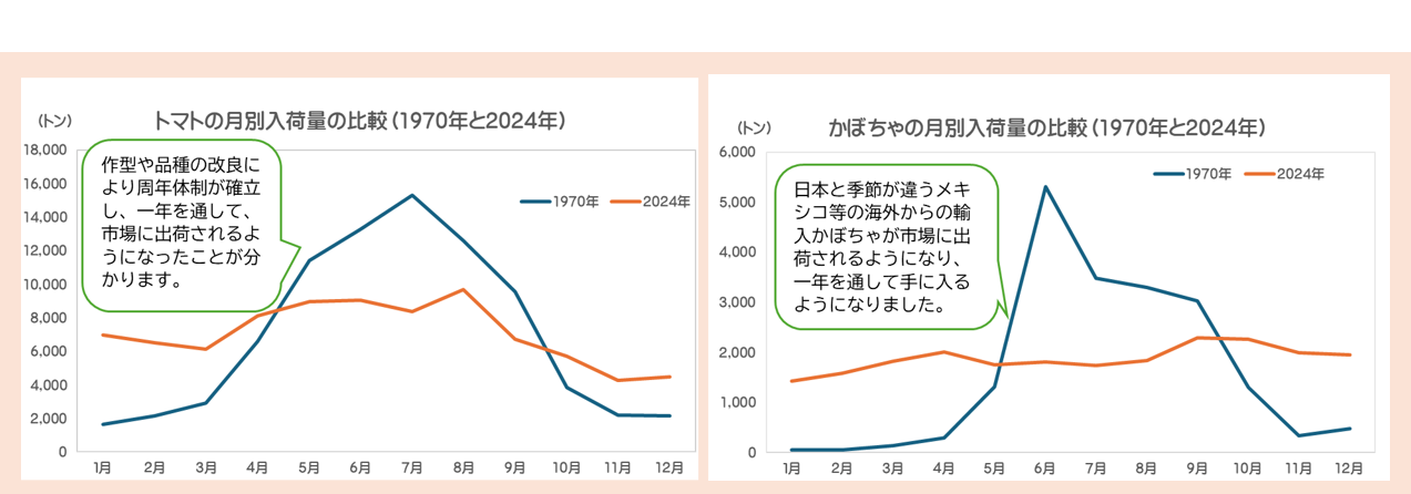去年より安いのか、10年間の平均より安いのか、トマトと比べて多いのか、だいこんと比べて少ないのか・・・このような比較により、より信頼性の高い判断へと繋がります。