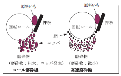 ロール磨砕機と高速磨砕機の機構の概略を図4に示した。