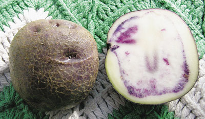 「北育13号」の塊茎と切断面の形態を写真1に示す。塊茎の形は扁球で、皮色は紫、肉色は白で紫の斑が入る。