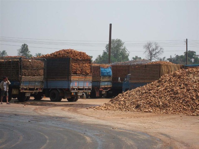 今後はエタノール生産にキャッサバが使用されるという明るい材料もあるが、現在、労働費 が上昇していることから、カンボジアででん粉工場の建設を予定している会社もあること。また、キャッサバからユーカリ、天然ゴムに転作する農家が増えてきたことが懸念材料である。このため、当該工場の会長によれば、今後のキャッサバの生産は不透明であるとのことであった。