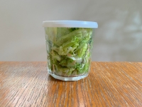 | 〇材料 ・レタス 1/2個(約150g) ・梅干し 1個 ・塩 小さじ1/2 ・じゃこ 10g |